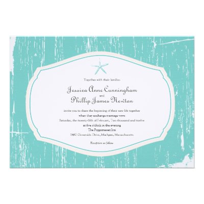 wedding invitation, blue, rustic country, driftwood, summer wedding, rehearsal dinner, starfish, barn wedding, rustic wedding, beach wedding, reception, informal, french country, distressed, distress, farm, country, elegant, trendy