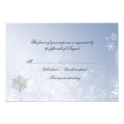 winter wedding, blue white, snow, snowflakes, wedding, special occasion, event rsvp, invitation response, rsvp cards, formal, stylish, elegant, custom, wedding reception cards, party rsvp, response cards, wedding response
