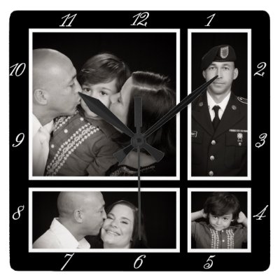Photographic Collage Four Modern Family Decor Square Wall Clock
